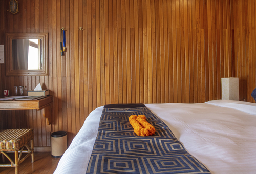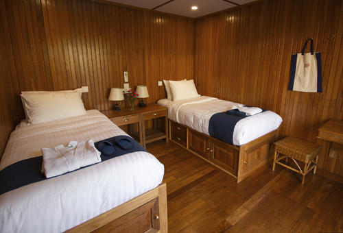 Die Kabinen sind geschmackvoll eingerichtet und bieten durch große Panoramafenster eine fantastische Aussicht auf die umliegende Flusslandschaft. Jede Kabine verfügt über Dusche/WC sowie eine individuell einstellbare Klimaanlage. Auf dem Hauptdeck befinden sich 10 Kabinen mit einer Größe von jeweils 16 m², ausgestattet mit zwei Einzelbetten und großen Panoramafenstern. Das Oberdeck beherbergt weitere 8 Kabinen gleicher Größe und Ausstattung, die ebenfalls durch ihren Ausblick und Komfort überzeugen.